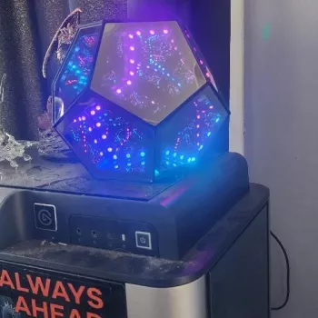 This thing is so cool, it has far exceeded my expectations. There are a bunch of different light patterns (48!) that it can automatically cycle through to keep things interesting, or you can pick your favorite, plus constant single-color modes. It can also sync to music, but I haven't tried that yet.
