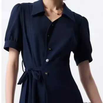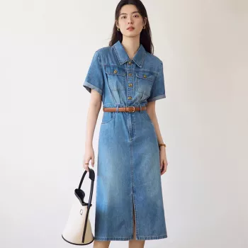Denim Blue Polo Neck Short Sleeve Shirt Dress