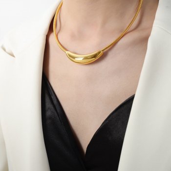 Vintage Stainless Steel Curved Pipe Choker Necklace for Women and Girls