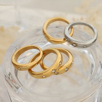 Asymmetric Water Droplets Star Ring, 18K Gold Plated Zircon Stainless Steel