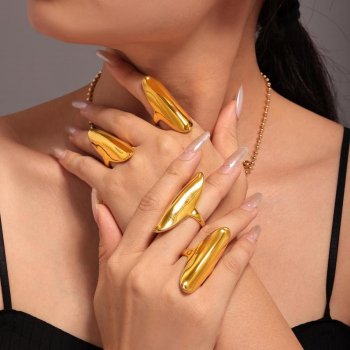 Minimalist Oval 18k Gold Plated Stainless Steel Ring for Women