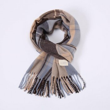 Luxury Plaid Cashmere Scarf with Tassels