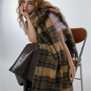 Oversized Plaid Cashmere Scarf with Tassels