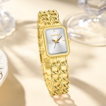 Exaggerated Gold Stainless Steel Watch Band Bracelet for Women