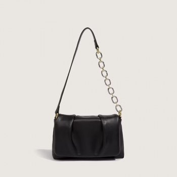 Luxury PU Leather Shoulder Bag with Metal Chain and Pleated Design