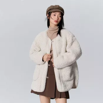 White Imitation Lamb Wool Cotton Coat for Women