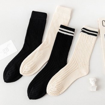 Women’s Black and White Striped Cotton Socks