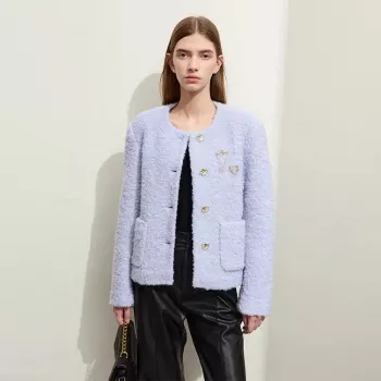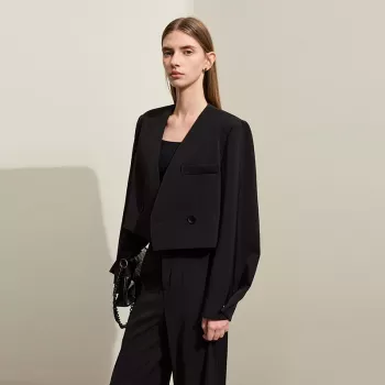 Minimalist Woolen Coat for Women with Stand Collar and Slit