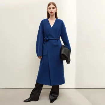 Elegant Autumn Woolen Coat with Chinese Buckle and Waist Rope