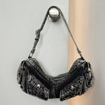 Y2K Punk Denim Jeans Belt with Rhinestone Butterfly Buckle – Casual & Versatile