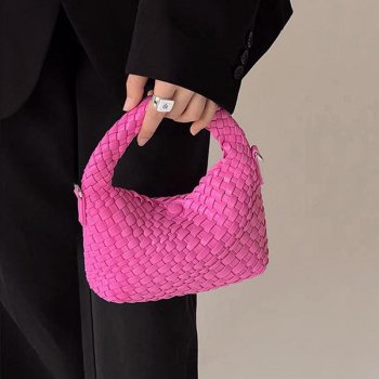 Mini Macaron Color Woven PU Leather Messenger Bag