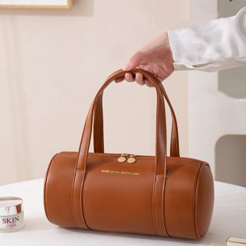 Women’s PU Cylinder Tote Makeup Storage Bag