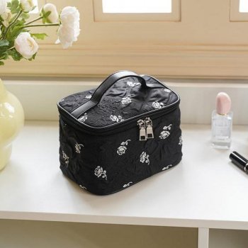 Large Capacity Women’s Black Rose Cosmetic Bag