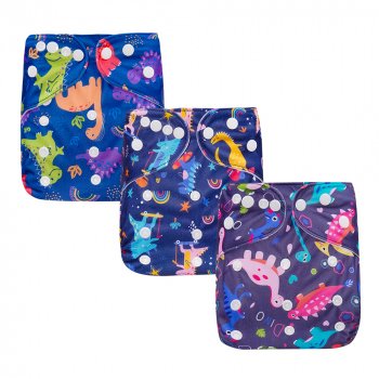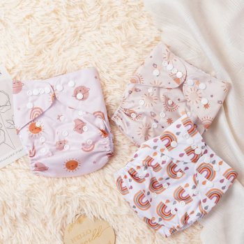Cute Print Reusable Adjustable Baby Pocket Diaper 3-Piece Set with Suede Cloth
