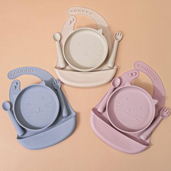 4-Piece Silicone Baby Feeding Set with Bowl, Bib, Fork & Spoon – BPA Free Toddler Tableware