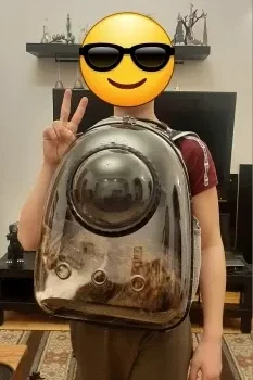 My cat loves this backpack! The transparent design is fantastic and the ventilation is great. It's easy to carry and very stylish. Perfect for taking my cat on adventures. Definitely recommend it for pet owners.