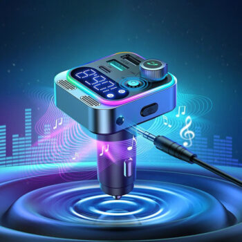 Bluetooth 5.3 FM Transmitter with Dual Mics, Deep Bass & Fast Car Charger