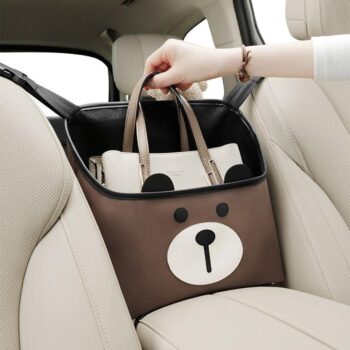 Cute Cartoon Leather Car Seat Organizer with Multi-Function Storage