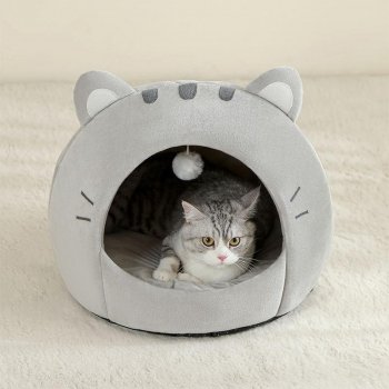 Cozy Semi-Enclosed Cat Bed with Cat Ear Design – Warm All-Season Nest